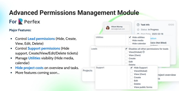Note: This is a module for Perfex CRM, not a standalone script. This module works best on Perfex CRM version 3.2.1 and later. We recommend testing it on a staging copy before deploying to your production Perfex instance. This module may not work if you are using Perfex CRM as a SaaS service.