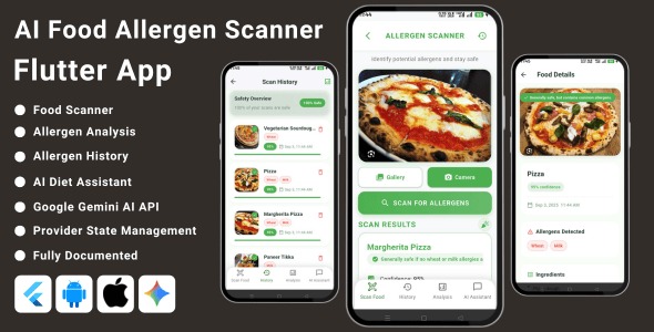 Will give almost all the details required AI Food Allergen Scanner Flutter App all Features like Scan Image of Food, History Of Foods, Details Of Food, Detection Results, Analysis Of Food, AI Diet Assistant Chat Bot