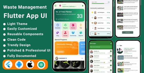 AI-Powered Waste Management Flutter App Template | Garbage Collection | Recycling Tracker UI Kit