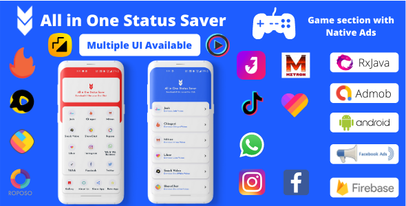 All In One Status Saver is an Android All Social Media Video and Image Downloader App. You can Save Facebook, Insta, Whatsapp Stories and TikTok, MxTakaTak, Moj, Josh, Chingari, Mitron, Sharechat, SnackVideo, Roposo, Likee, Whatsapp, WA Business, Twitter, and Instagram Videos and Images, Reel with All In One Status Saver without watermark. You can easily share them from the App. Interstitial and Banner Ad Support and Many More Features are Available in the App, Download the App and see all the features.