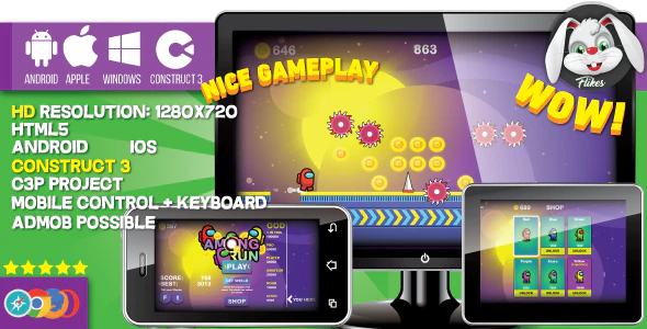 1 review for Among Run – HTML5 game, Construct 3 (.c3p) + mobile, sharings, shop, AdMob possible