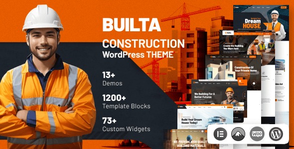 Builta is a beautifully handcrafted, pixel-perfect Builta Construction WordPress Theme based on the Elementor Page Builder. It is designed with great attention to detail, flexibility, and performance.