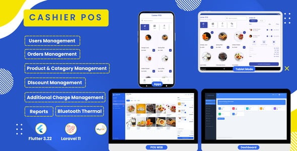 Cashier POS – Flutter & Laravel Solution with Point Of Sales Responsive Smartphone and Tablet