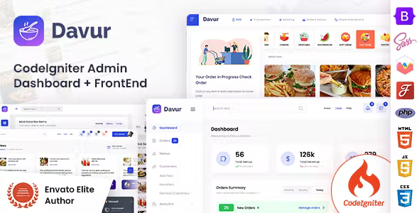 Davur – Restaurant Codeigniter Admin Dashboard + FrontEnd