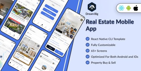 DreamBig – Domain Clone Real Estate App For Property Buyer & Seller | React Native CLI template
