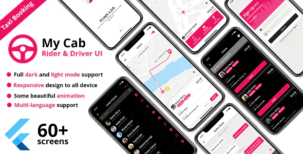 My Cab Ui contains 60+ Screens with a different type of UI component; this kit can save your time to code all Front end layout and its Easy to implement with your code!.one the main thing is Its support both platforms Android and ios.
