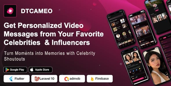 DTCameo – Personalized Video Messages from Celebrities & Influencers – Flutter App with Admin Panel Experience the ultimate connection with your favorite celebrities and influencers through DTCameo, a state-of-the-art Flutter app with an integrated admin panel. Designed to offer a seamless and engaging user experience, DTCameo is packed with powerful features to enhance your interaction with stars and influencers.