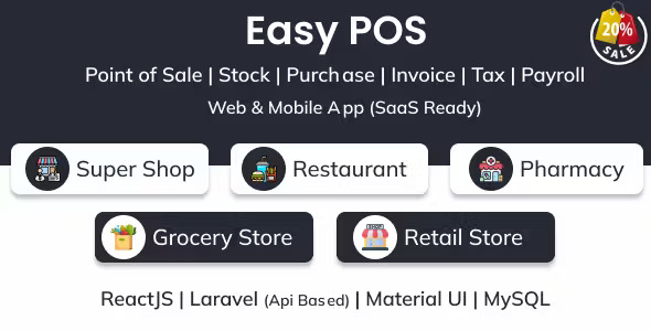 Easy POS- Point of Sale | Stock | Purchase | Invoice | Tax | Payroll | Web & Mobile App (SaaS Ready)