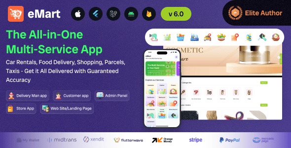 eMart | Multivendor Food, On-demand, eCommerce, Parcel, Taxi Booking, Car Rent App with Admin & Web