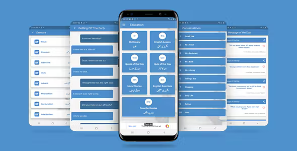 This English Grammar Learning app is a complete package for those who wants to learn English language with grammar. This app is a very easy guide. It includes tenses, exercises, quizzes, quotes, essays, dialogues, phrases, dictionary and many more