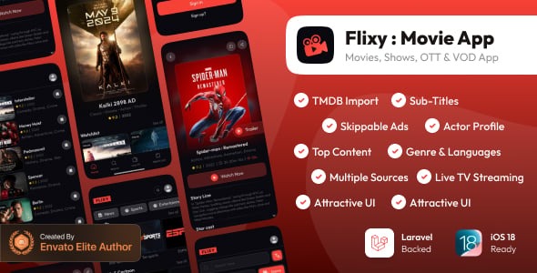 Flixy iOS : Movie App : Series,Live TV, Video Streaming App, Netflix Clone : Swift UI/Laravel