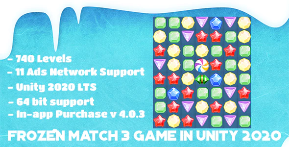 The Frozen Match 3 Game is developed in Unity 3D version 2020.3.2f1 (LTS)