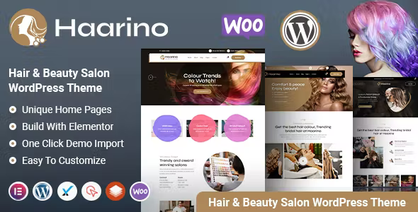 Haarino – Hair Salon WordPress Theme focuses on barber, makeup, stylist, spa and similar business sites. We integrated Elementor Page Builder, Revolution Slider, WooCommerce support and many other nice features so it can be used for any type of business.