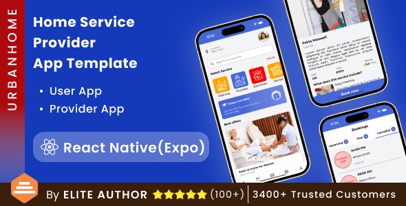 Home Service Finder & Provider Booking Template in React Native | 2 Apps | UrbanHome | Android & iOS