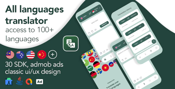 Buy Professional All languages translator android app and Get the professional experience of the high-quality features of it. Having professional features of translating to over 100+ languages, the app is very powerful and beautifully designed.