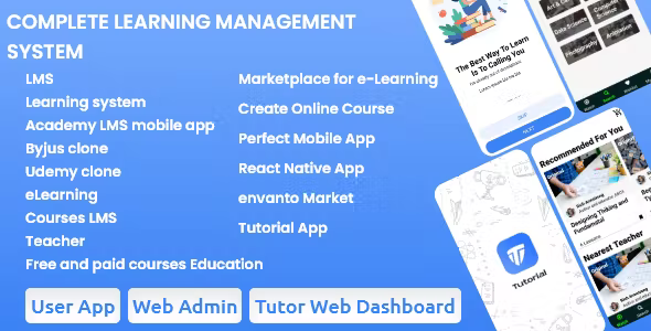 Tutor App is mobile app with web admin source code developed using React Native and PHP.