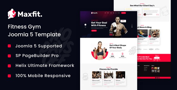 Elevate your fitness business with Maxfit, a cutting-edge Joomla 5 template designed specifically for gyms, fitness centers, personal trainers, and wellness studios. Powered by the SP Page Builder and Helix Ultimate framework, this theme delivers unmatched flexibility, performance, and the latest Joomla 5 capabilities, ensuring your website stays ahead of the competition.