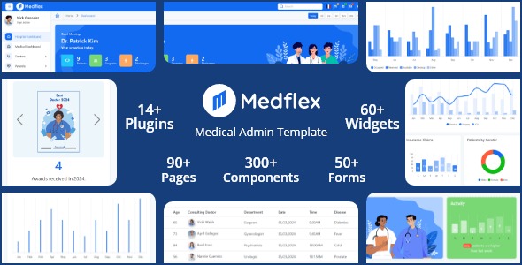 MedFlex is a Bootstrap 5 Medical Admin Template that comes with features like a doctors dashboard, patient dashboard, hospital dashboard, dentist dashboard, medical dashboard, patient history, appointments, departments, staff, HR, accounts, salaries, rooms, ambulances, stats, sales, visits, monthly revenue, and performance tracking. We have designed and developed this template with a classic and minimal look. It comes with 90+ HTML files. We have almost covered all medical-related pages in this template.