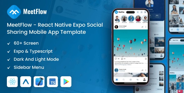 MeetFlow – React Native Expo Social Sharing Mobile App Template