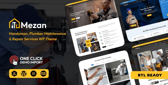Mezon is a Handyman, Home Maintenance WordPress Theme. Best theme uniquely created for plumbing services, electrical work, carpentry company, home repair business, building & furniture refurbishment consulting, windows & doors installation, Air Conditioning, AC Service, Cleaning Services and all kinds of home maintenance websites. Elementor repair & maintenance service theme supports WooCommerce addon for an online shop where you can sell hardware items, glues, screws, nuts and bolts, carpentry items, auto spares, painting materials, renovation items, roofing items, flooring tiles.