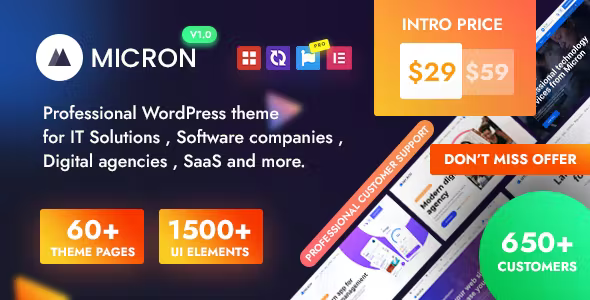 Micron created with latest design trends according to all your needs to create professional and high performance website. Theme is Developer Friendly theme so , if you have coding & programming skills , you can easily modify codes and add you own codes to theme.