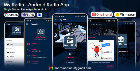 My Radio is an Single Station Live Radio Application For Android Platform, Android Mobile Application That Runs Online Live Radio Anytime AnyWhere, Supports Almost All Audio Formats, This Application Is Specially Optimized To Be Extremely Easy to Configure And Detailed Documentation is Provided, You Can Easily Create Your Own Android Radio App With This Template And Save Your Money And Time.