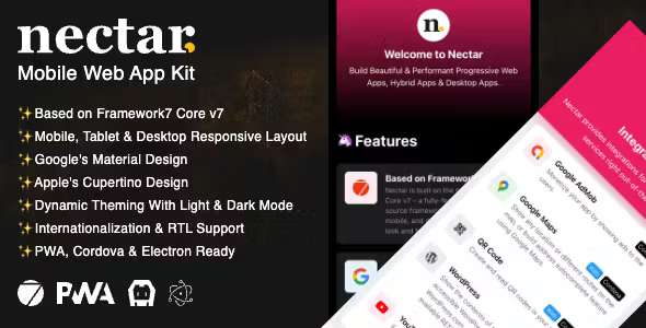 Introducing Nectar – Build Beautiful & Performant Framework7 Core v7 Based Progressive Web Apps, Hybrid Apps for Android & iOS using Apache Cordova, and Desktop Apps for Windows, Linux & macOS using Electron.