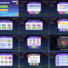 The kit includes: 12 screens in PSD and PNG – Main menu – Settings – Score. Diamonds – Score. Life – Levels – Victory – You lose – Missions – Messages – Daily Reward – You Reward – Profile 120+ icons. Screens with icons in PSD and PNG. 25 buttons. Screens with buttons in PSD and PNG. 4 backgrounds. Screens with backgrounds in PSD and PNG.