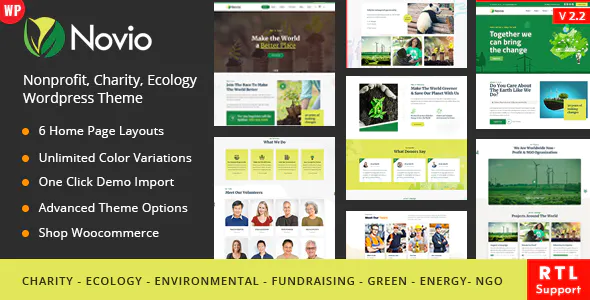 Novio WordPress Theme for Ecology & Environmental Non-Profit Organization with predefined web elements which helps you to build your own site.