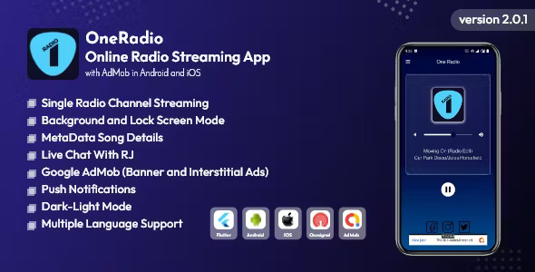 OneRadio is a live streaming single station mobile application, it’s extremely simple to tweak yet very force full and basic application using icecast, shoutcast streaming url. Listen your preferred Radio Station Live with this Android and IOS application on your mobile device. Also added AdMob Banner and Inerestitial Ads, with setup this you can earn money from the app. So it is perfect for yours. No coding knowledge required here for publishing apps. Anyone can run apps by following the project instructions. So all features are given below: