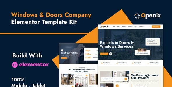 Openix – Windows & Doors Company Elementor Template Kit designed for stores of windows & doors, repair & maintenance services, design and architecture firms, construction bureaus, individual designers company and architects, and bloggers who are into interior design, home renovation
