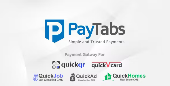 Paytabs Payment Gateway is a module for QuickQR QR Menu Maker or Quickad Classified or Quickjob Job Script that enables you to receive payments from these CMS.