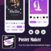 Poster Maker is an easy to use app, just select the background you like in the ratio as per your need and add your text with poster design fonts, add wonderful stickers (specially picked for poster making), add your pictures from gallery and create perfect poster every time.