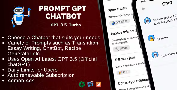 PromptGPT for IOS – AI Multi Chatbot based on ChatGPT GPT 3.5 and OpenAI | IOS Swift Full Application