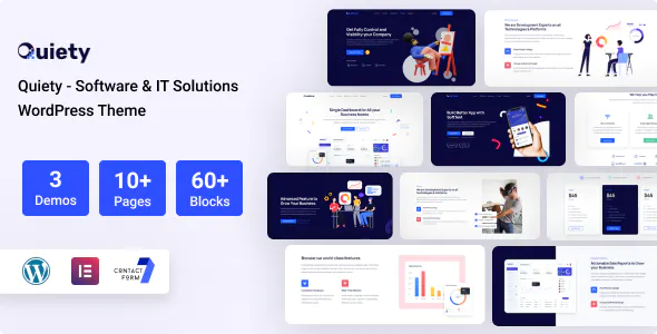 Quiety – Software & IT Solutions WordPress Theme is a powerful Easy to use, Mobile friendly, highly customizable IT solutions and SAAS products, built with Bootstrap 5 CSS framework. 3 Stunning Homepages and 12+ inner pages are included in this theme. It is 100% responsive on standard devices. It is a powerful WordPress theme, built exclusively for companies, agencies, startup who are working in developing desktop and mobile applications, SaaS, software, IT solutions and other digital products. We have used Elementor Page builder with Drag and drop feature.