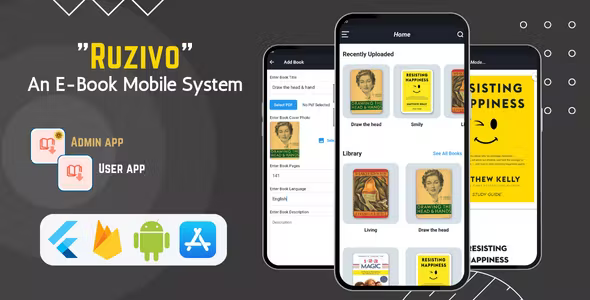 Ruzivo – An E-Book Mobile System built with Google’s Flutter & Cloud Firebase. You will get both apps(User & Admin App). People can read ebooks by using the user app. With the help of the admin app, you will upload new ebooks with all the proper details & book files.