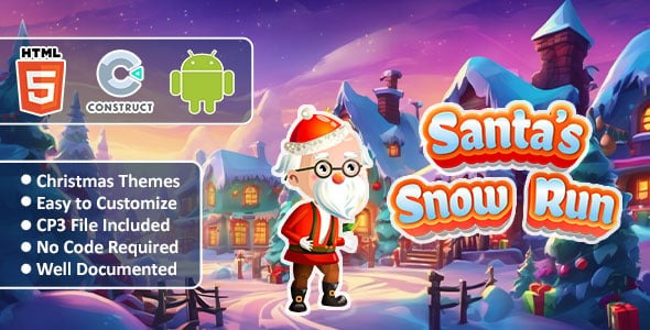 Santas Snow Run Game, Christmas Game (HTML5, Construct)