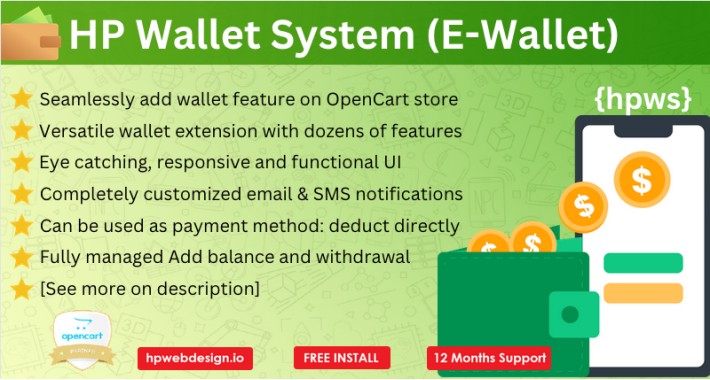 HP Wallet System is an extension that will act as digital wallet features on your opencart online store.