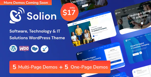 Solion – Software, Technology and IT Solutions WordPress Theme – designed specifically for , technical, cyber security, engineering, computing, entertaining, business, merchandising, eCommerce, educational & scientific purposes and many more. This is highly customizable – looks awesome on tablets and mobile devices. This Theme comes with 10+ unique Demo ( 8+ Demos Coming Soon ) and included 35+ Inner Pages. All standalone pages such as About, Event, Projects, Causes, Blog , Testimonials, FAQ, 404 or others essentials pages are included.