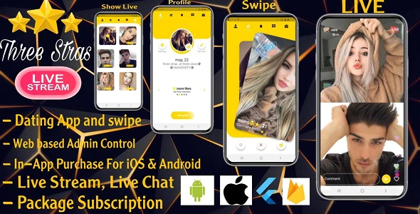 Three stars – live stream Complete Flutter Dating App with Admin