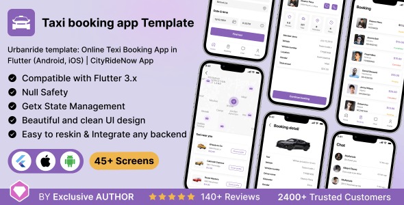 Urbanride app UI Template is a sleek, modern app template designed for online taxi booking App. Built using the Flutter 3.x framework, this template is fully customisable and can create beautiful and intuitive apps for Android and iOS platforms.