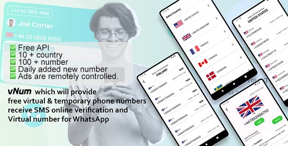 The vNum application allows to use free virtual number for receive SMS verification online. Download it to your smartphone, and at any time you will be able to receive SMS to a virtual number. Now install and get virtual number for whatsapp