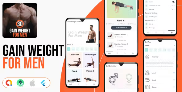 Weight Gain for Men -Flutter – Android & iOS App – Workout App – Fitness App