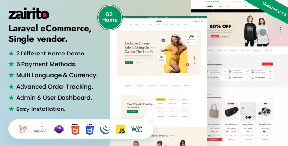 Zairito – Laravel eCommerce System – Single vendor